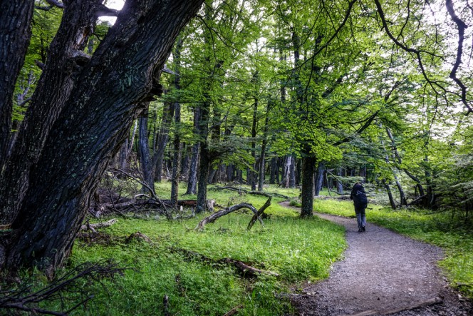 Nesse dia, que amanheceu nublado mas tornou-se lindo, voltamos àquela bifurcação e a tomamos rumo ao próximo camping. Dali, caminha-se um trecho silencioso dentro de um bosque que parece ter saído de um conto de fadas, para em seguida tomarmos o Sendero Madre y Hija, que são os nomes de duas lagoas lindíssimas, de um verde estonteante, que encontramos no caminho.