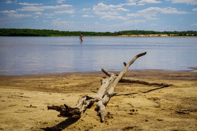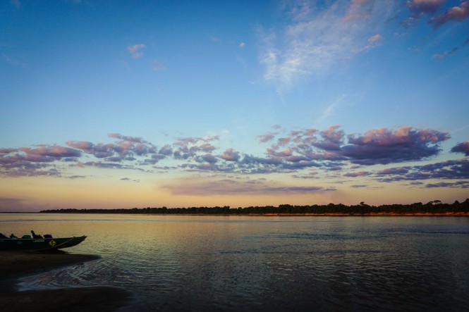 Ao fim da tarde, paramos em uma praia já no estado do Pará, onde o sol dourado iluminava o Seu Manoel, pescador da região, que nos divertiu com suas histórias mirabolantes sobre as piranhas que habitam o rio. Quando a meia-lua começou a aparecer, voltamos ao acampamento e finalizamos o dia com aquela conversa sem fim aos pés de uma fogueira.