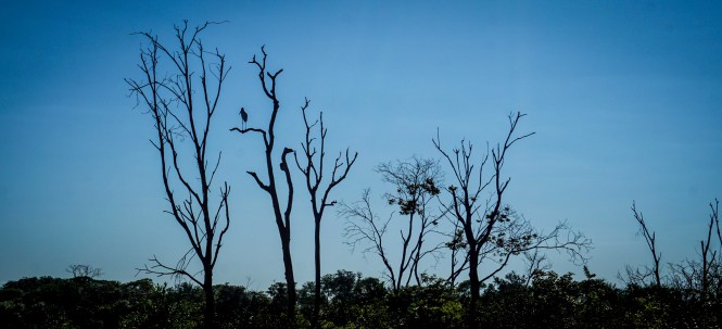 Na parte da tarde, partimos de carro em direção à cidade de Lagoa das Confusões, onde passamos a noite ao som de um animadíssimo forró. No dia seguinte, nosso destino era a maior ilha fluvial do mundo, a Ilha do Bananal. No caminho passamos por uma plantação de soja pertencente à Fazenda Diamante. Cenário triste e tão simbólico de nosso país, a gigantesca fazenda acaba por abrigar em seu interior uma diversidade absurda de animais, de tuiuiús e carcarás a veados do cerrado e emas, de jacarés-açus a gaviões.