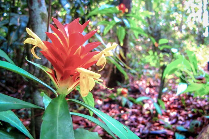 Seguimos em direção à Praia do Engenho, de onde parte a trilha para a Praia Grande do Cajaíba. Segundo o Sr. Orlando, fica a cerca de 40 min de caminhada, umas 5 praias a frente. Mas pegamos a bifurcação errada e, ao invés de seguirmos beirando a praia, fomos por uma outra trilha mais acima e aparentemente bem fechada.