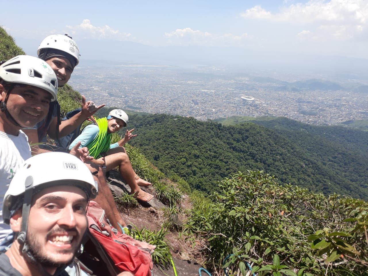 Eramos quartro participantes: eu, Gabriel, Menudo e Lucas. Um time muito empolgado e de amigos. Sou muito fã do Lucas e do Menudo desde a época do Curso Básico de Montanhismo e agora era uma honra estar escalando com eles em uma via tão bonita e clássica. Essa escalada foi uma loucura, já que era meio de semana e eu estava chutando o trabalho para ir. Cara, um convite desses não se recusa.