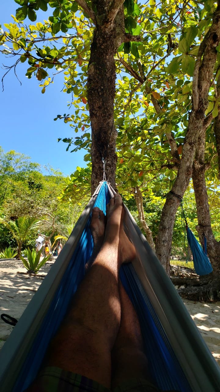 Foram cinco dias de um intenso fluxo Barraca x Praia. Me perdoem os que estão lendo o meu relato cercados por paredes, mas não podia deixar de esnobar essa imensa riqueza. Foram dias para descansar do ritmo intenso. A rotina era fácil: levantar, tomar café da manhã, caminhar até a praia, estender a canga ou achar uma rede disponível, se alojar e tomar banho de mar, com pausas somente para as refeições. Eu não precisava ou queria outra coisa na vida. Andar muitos km em um dia? Que nada! Lembro bem dos momentos que passei apenas deitado na rede, olhando para nada...