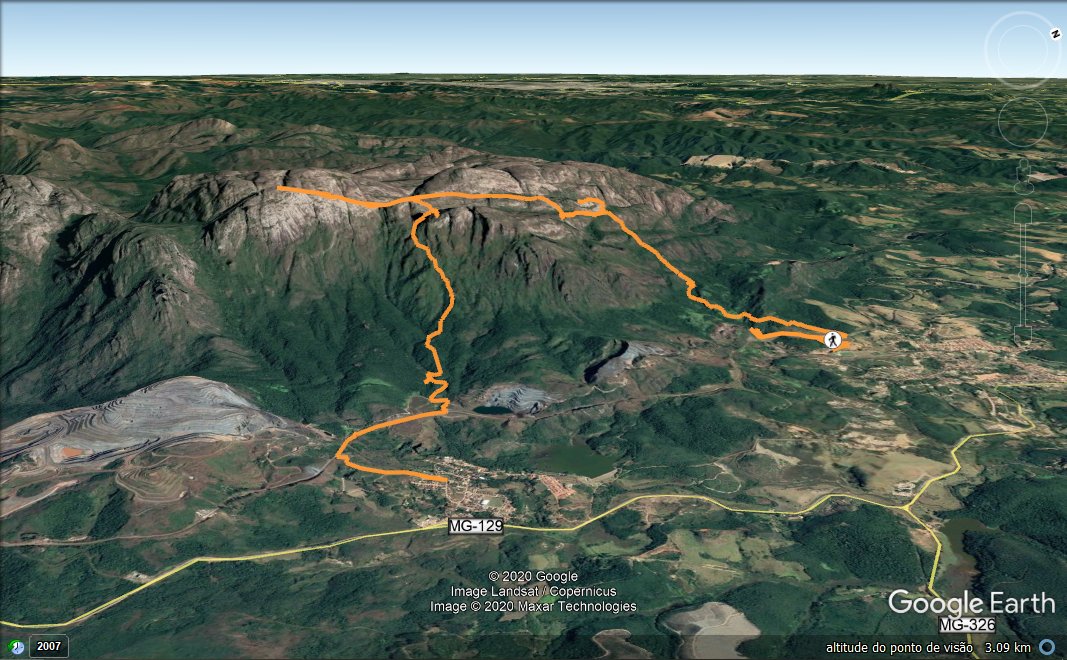 Mais uns minutos no cume e o tempo se abriu totalmente, mostrando tudo que estava no entorno. As cidades de Minas Gerais apareciam na paisagem, mas com elas as várias áreas de mineração da região. Um “putz” no olhar.