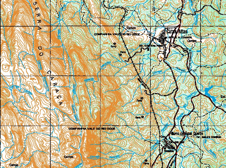 Parte da Carta Topográfica (1:50.000) de Catas Altas (Fonte: IBGE).