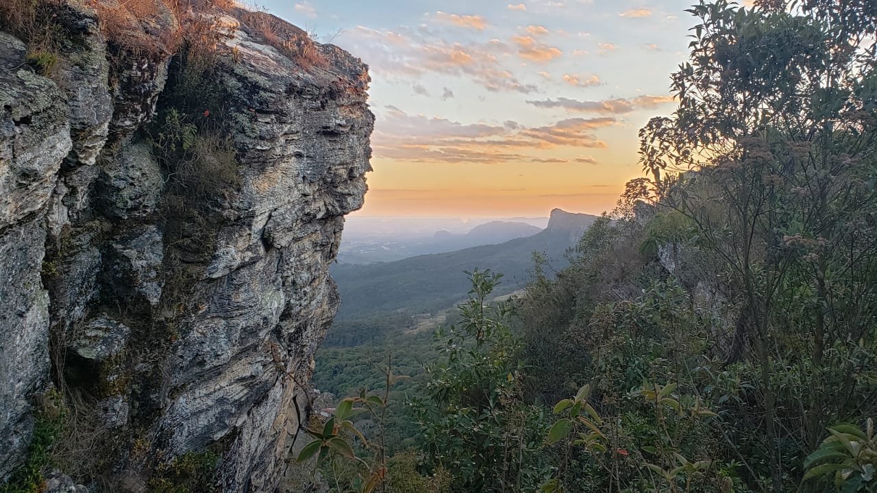 Curtimos o mirante e voltamos para leste, rumo à descida de 4 km da pedreira. Em uma última parada no Mirante da Garganta, nos despedimos do alto. Começamos uma boa e rápida descida. Ao passarmos pela antiga pedreira, nos deparamos com um caminho de pedras soltas, mas bem marcadas e relativamente estáveis. Não passamos perrengues e não rolamos. Mais alguns resíduos coletados e finalmente alcançamos a trilha de descida final.