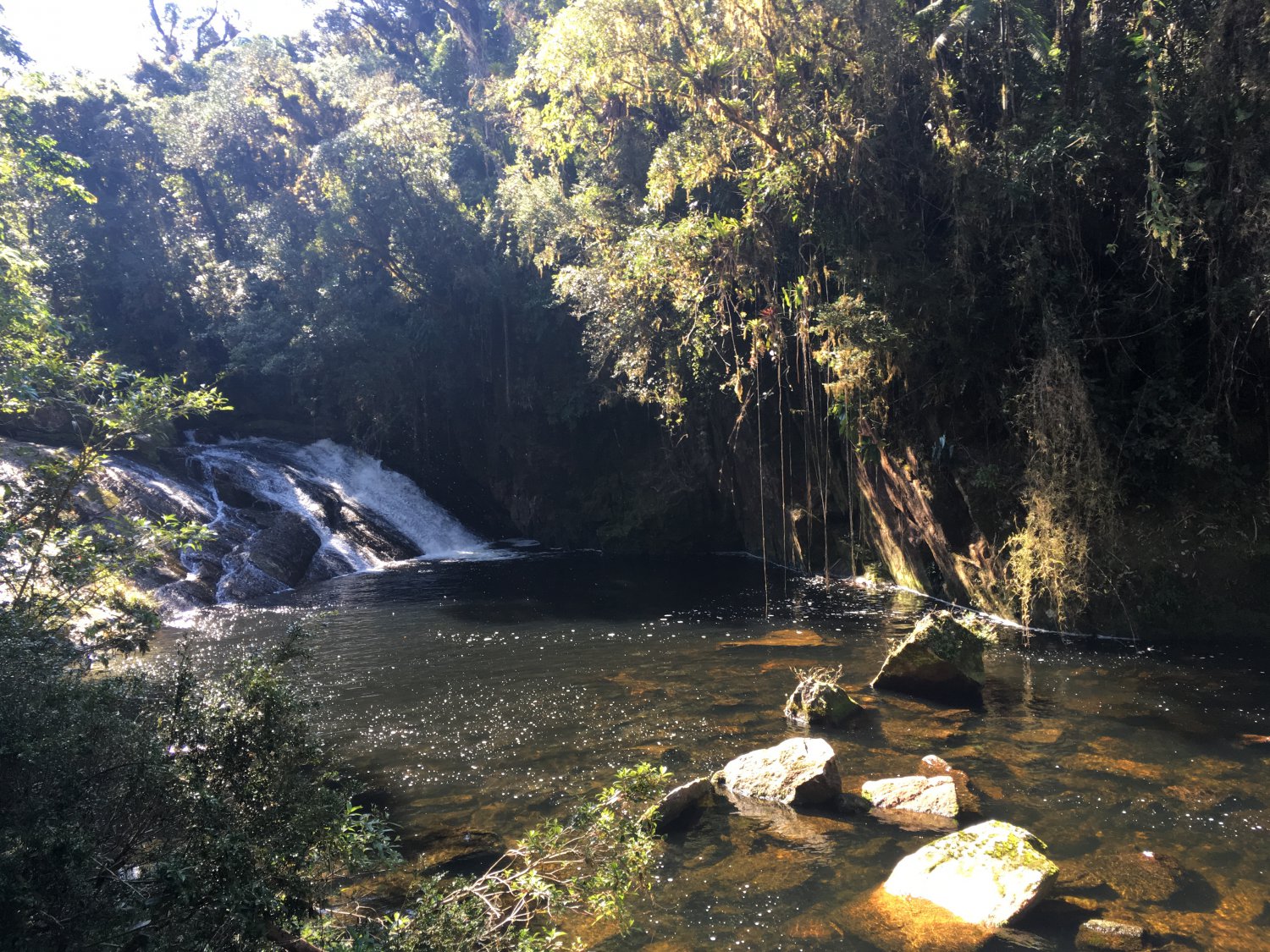 A próxima é a Cachoeira Do Salto Grande, muito linda. É a principal parada para banho, isso se você aguentar a aguá gelada é claro (risos), porque mesmo estando um dia lindo a aguá estava muito fria. Com uma parada de 1h, mais ou menos, é possível aproveitar bastante. Nela você pode observar o cardume de Pirapitinga (espécie de peixe que dá o nome a trilha).