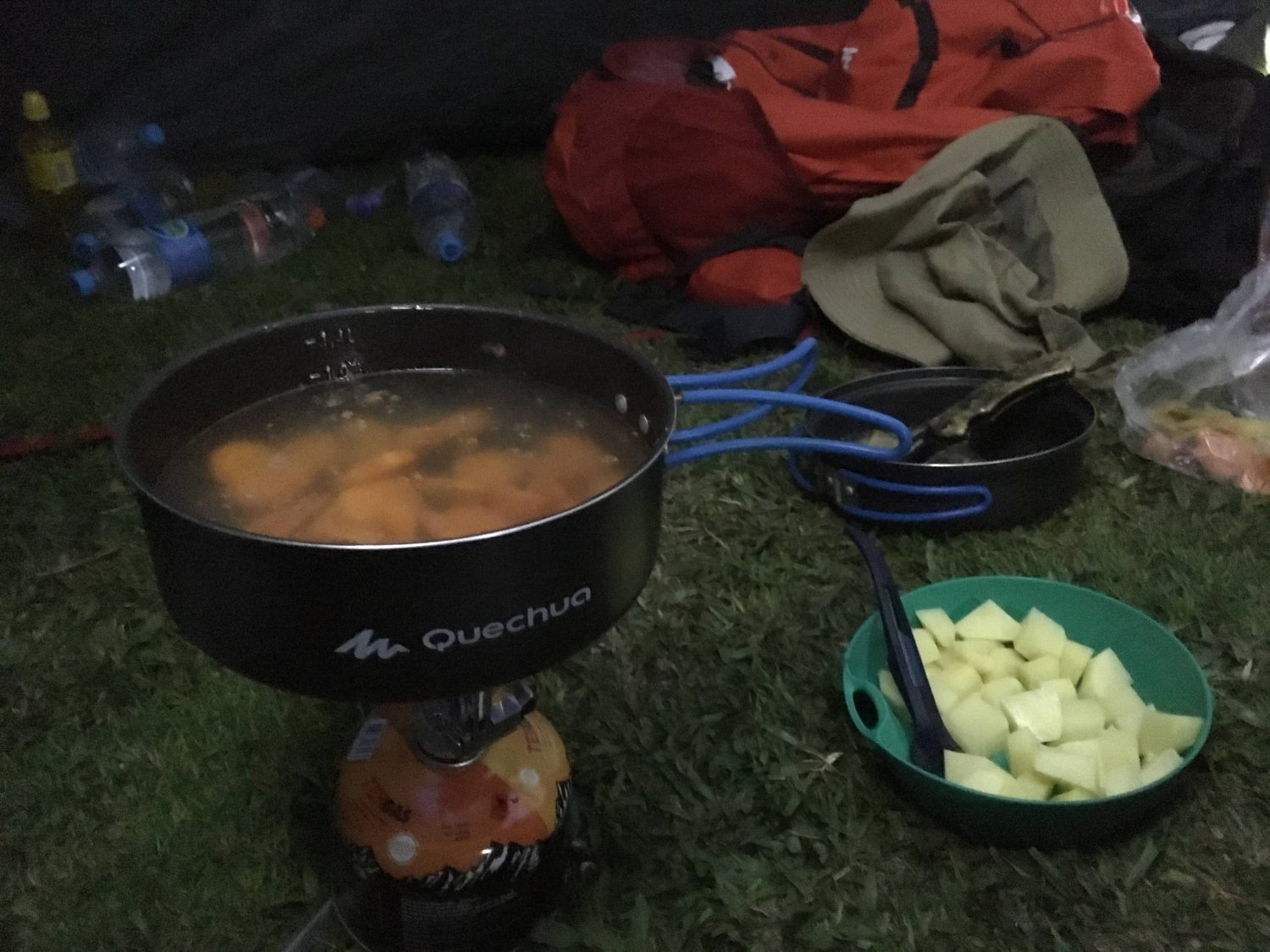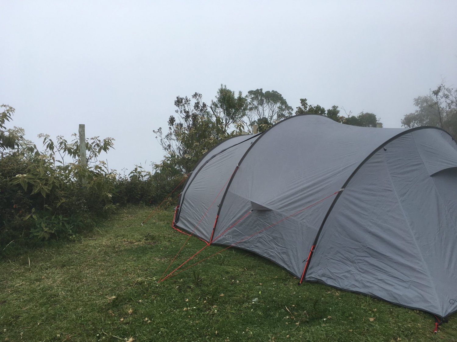 Assim que chegamos fomos jogar nossas mochilas no chão e montar nossa barraca na área de camping. Não chegamos ir na pedra o que talvez tenha sido um pequeno vacilo já que durante a montagem da barraca o tempo fechou e não dava pra ver mais nada. Não tinha nenhuma barraca aonde montamos a nossa, achamos até que ia ter só a gente acampando lá, porém depois chegou algumas pessoas, mas que acamparam em outro lugar.