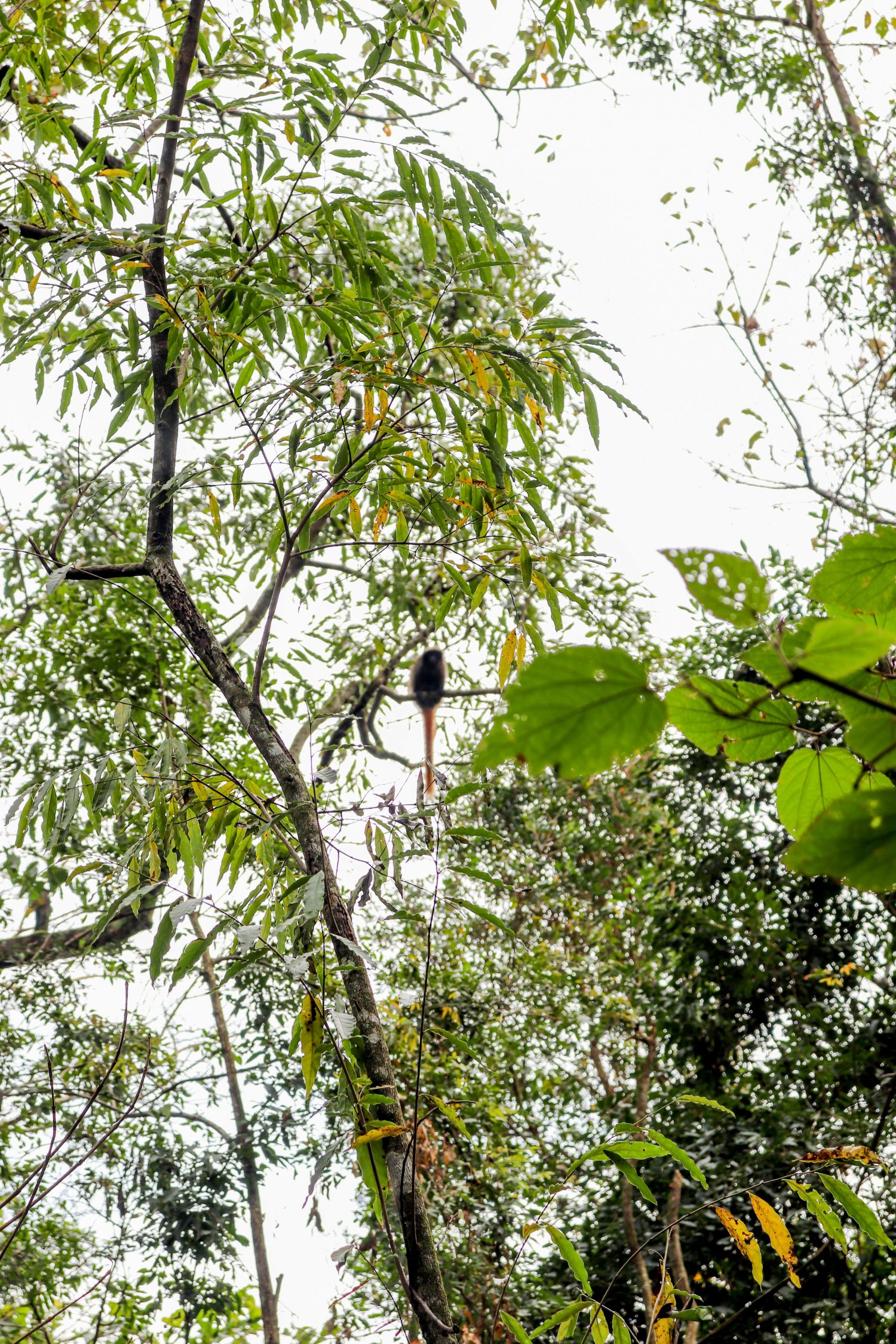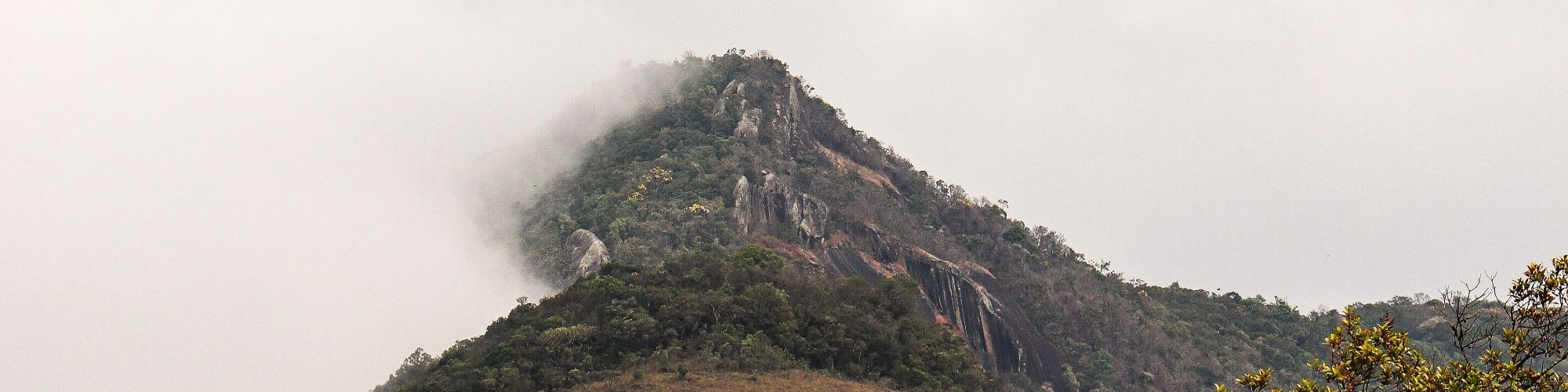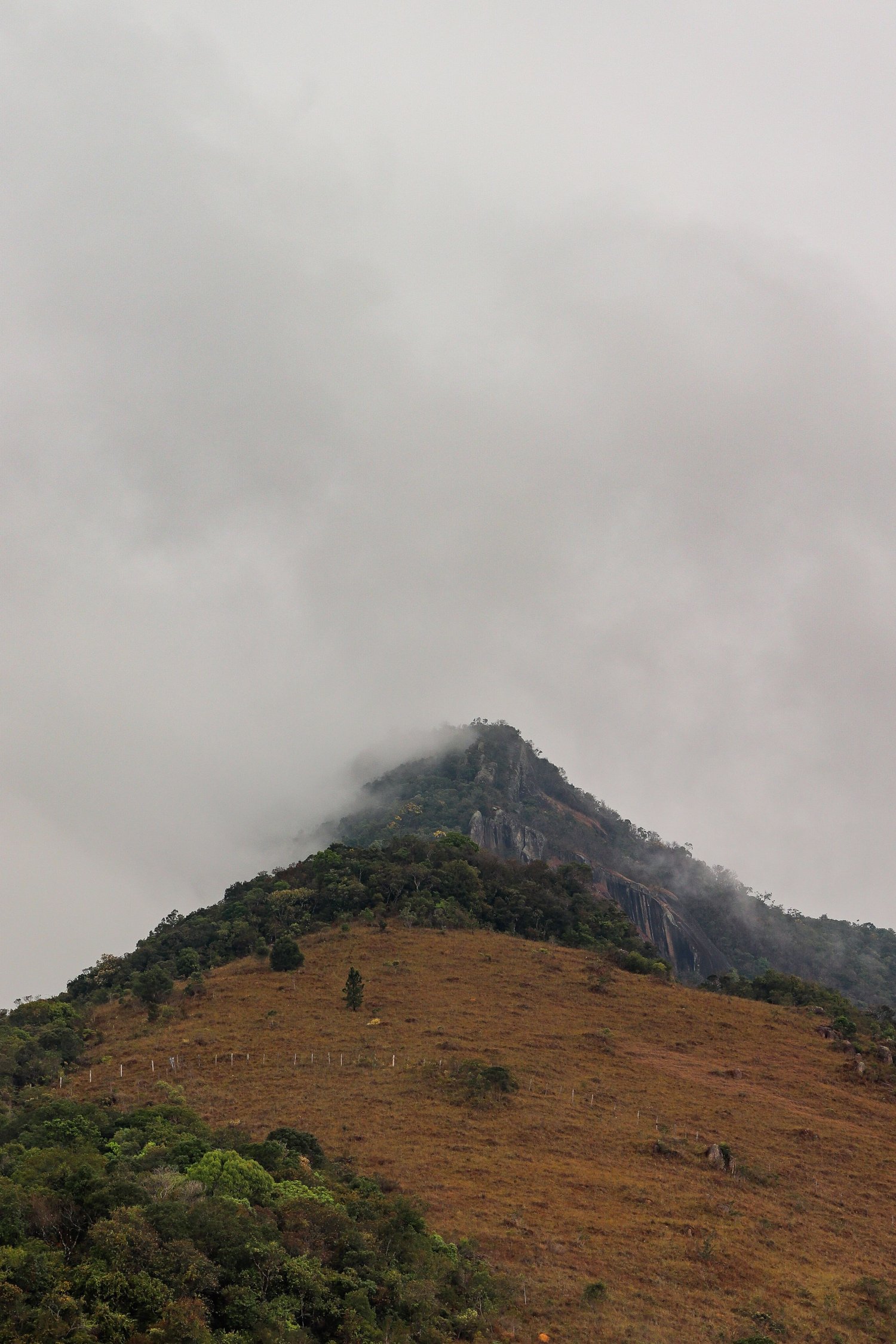 Tiramos algumas fotos, o Nino fez até pose pra gente. Comemos umas bolachinhas, ficamos um bom tempinho no Pico para então começar a retornar. Ora chovia, ora parava. Foi assim o caminho inteiro, mas não chovia forte. Em uma das entradas das trilhas, vimos um macaquinho. Ele estava em cima da árvore bem visível e depois entrou um pouco mais pra mata. Adentramos um pouco da trilha apenas para tentar uma foto dele, saquei a câmera e tentei. Hahaha