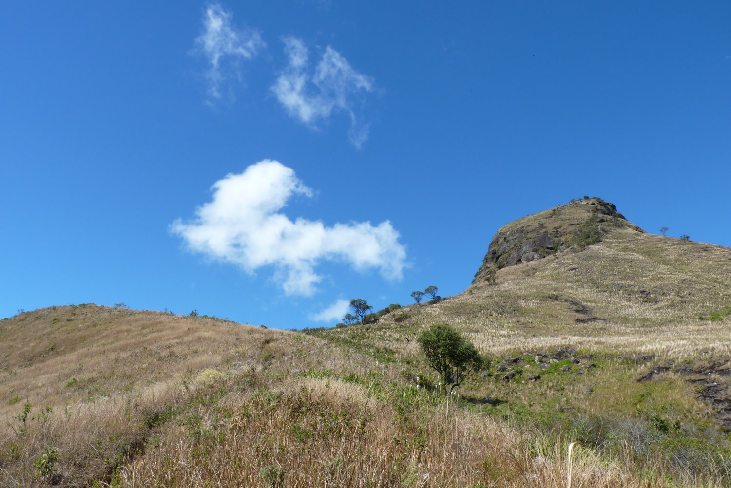 Logo a trilha volta a ficar definitivamente a céu aberto. Preste atenção, pois nesse ponto é comum encontrarmos outras trilhas menos definidas. Procure ficar sempre na trilha mais marcada. Logo você começará a subir pela crista da montanha e o cume estará bem próximo, embora ainda faltem uns 350 metros verticais.