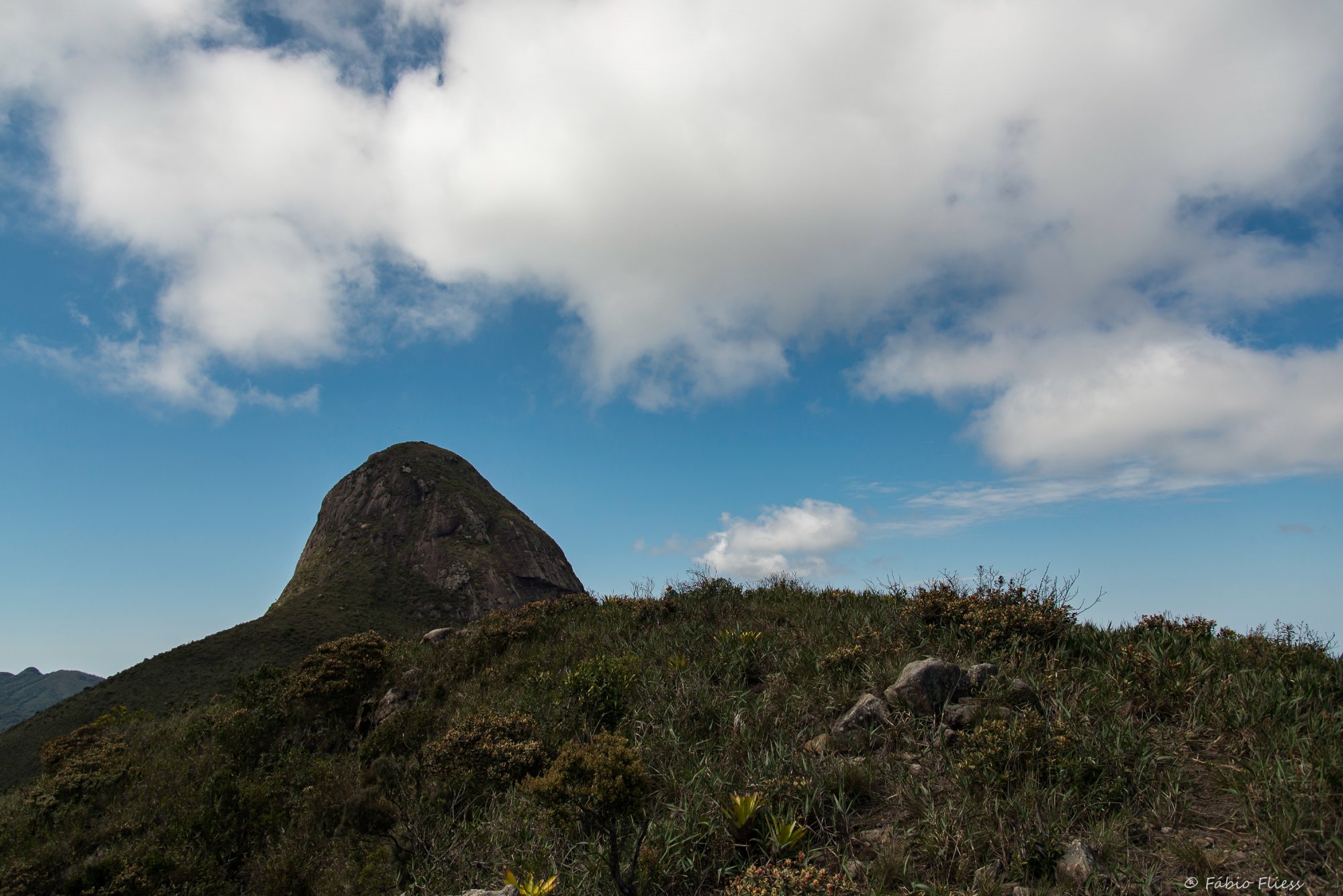 Linda montanha no Parque Nacional da Serra dos Orgãos, acessada por uma caminhada exigente mas com visual recompensador.