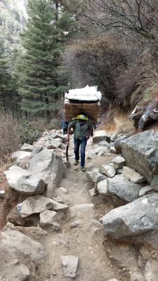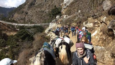 Longo trekking ao campo base do Everest, com subidas em escadas de pedras, terreno misto e pedregoso, fora as nevascas, tudo excelente!!!