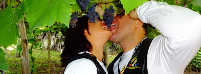 No outro dia fomos conhecer a cidade e seus pontos turísticos, pergunta daqui, dali, entre um café e outro decidimos rodar por conta própria (afinal o que seria de uma aventura verdadeira sem a busca pelo desconhecido), achamos uma vinícola, um parreiral lindo, todo carregado e lá no meio uma casinha azul (lembro como se fosse hoje) resolvemos ir até lá, chegando na casinha, uma moça muito simpática nos recebeu e meu amigo já foi logo falando com a moça: "meu sonho de infância era comer uva no pé, desde pequeno sonho com isso e quando ví esse parreiral eu lembrei do meu sonho" ... a moça toda encabulada, sorriu, saiu de fininho e logo voltou com uma tesoura de poda, (não vou mentir que essa hora deu medo da moça) mas ela sorriu e disse: "pode ir lá, comam a vontade, eu só peço que os cachos de uva que vocês comerem, se sobrar uva, arranque o acho pois é ruim para a nossa produção.
