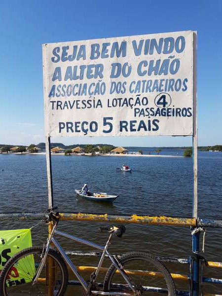 Pela manhã cedo do dia combinado, estava seu Climério a postos nos esperando às margens do rio. Subimos na catraia e atravessamos o canal que separa Alter-do-Chão da Praia do Amor, tendo sempre a Piraoca em vista.