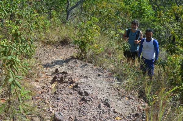 Então começa a subida e forma de zig-zag. Há uma forte erosão cruzando essa trilha, que pode confundir o viajante. A terra solta nesta erosão pode gerar certo perigo de escorregamento.