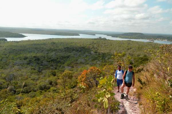 Não precisa calça comprida ou manga longa. nem repelente. Mas, água, protetor solar e boné são fundamentais. Recomendo também usar tenis ou bota, pois a areia na trilha é fofa e quente, e na subida há pedregulhos soltos. Evite fazer a caminhada nas horas mais quentes do dia, pois o calor é intenso.