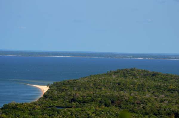 Ao chegar no topo. marcado por uma grande cruz de ferro, após cerca de 40 minutos de caminhada, a visão é fantástica. o majestoso rio Tapajos, que chega a ter quase 20km de largura, praias, lagos e vegetação exuberante, alé de visão geral de Alter-do-chão e da praia do Amor.