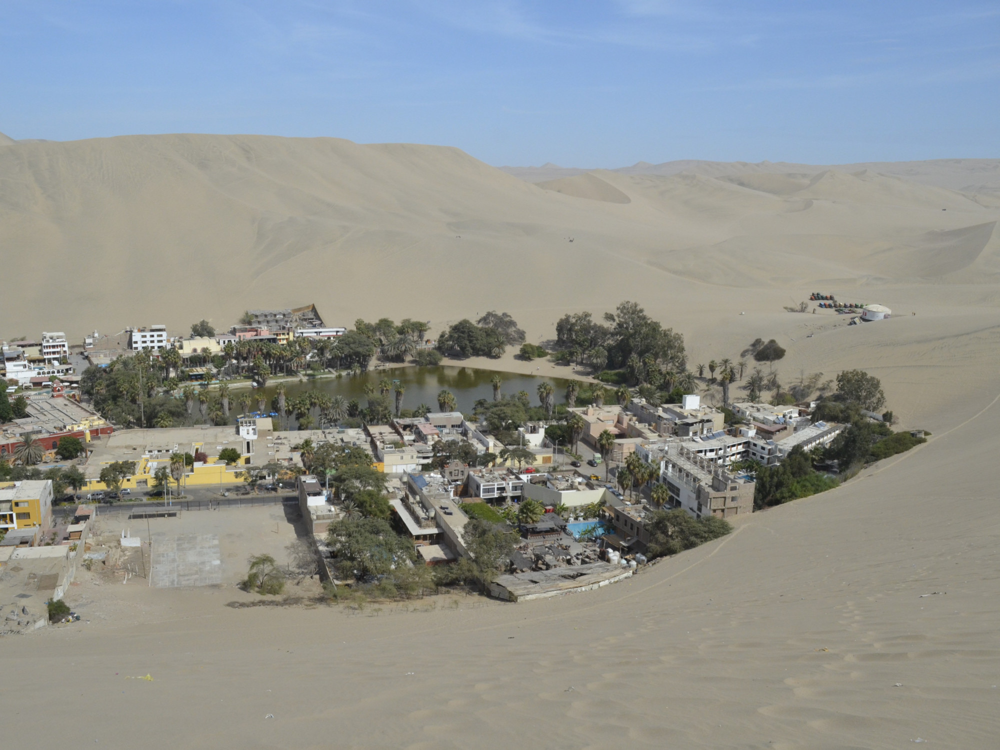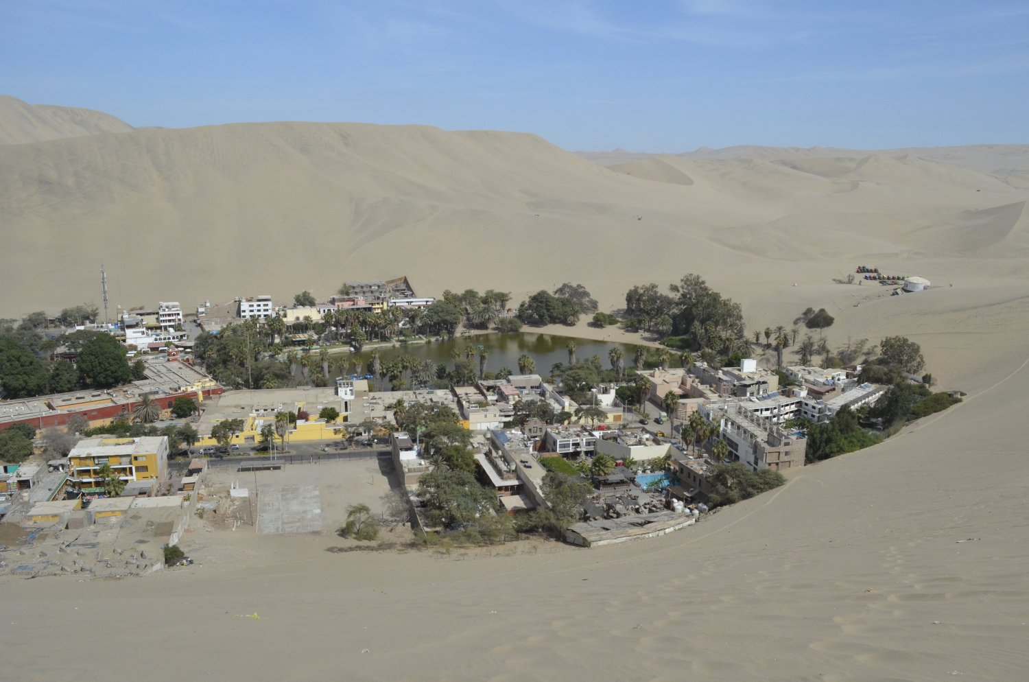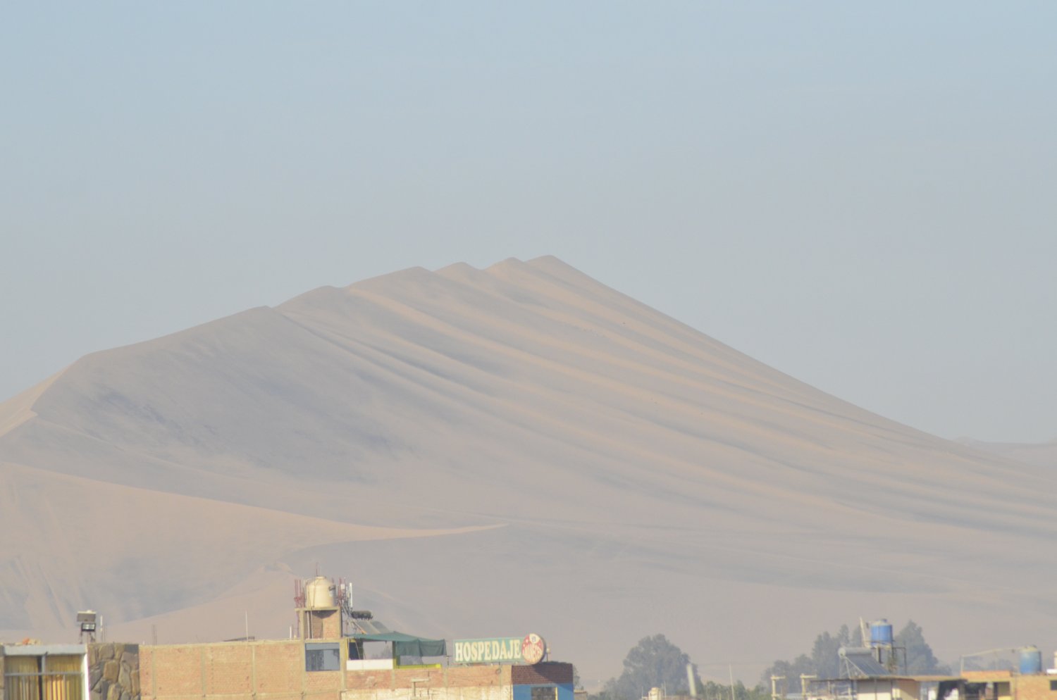 Do terraço do Hotel, em Ica, a cerca de 3km do Oasis, já era possível observar as grandes dunas do deserto.