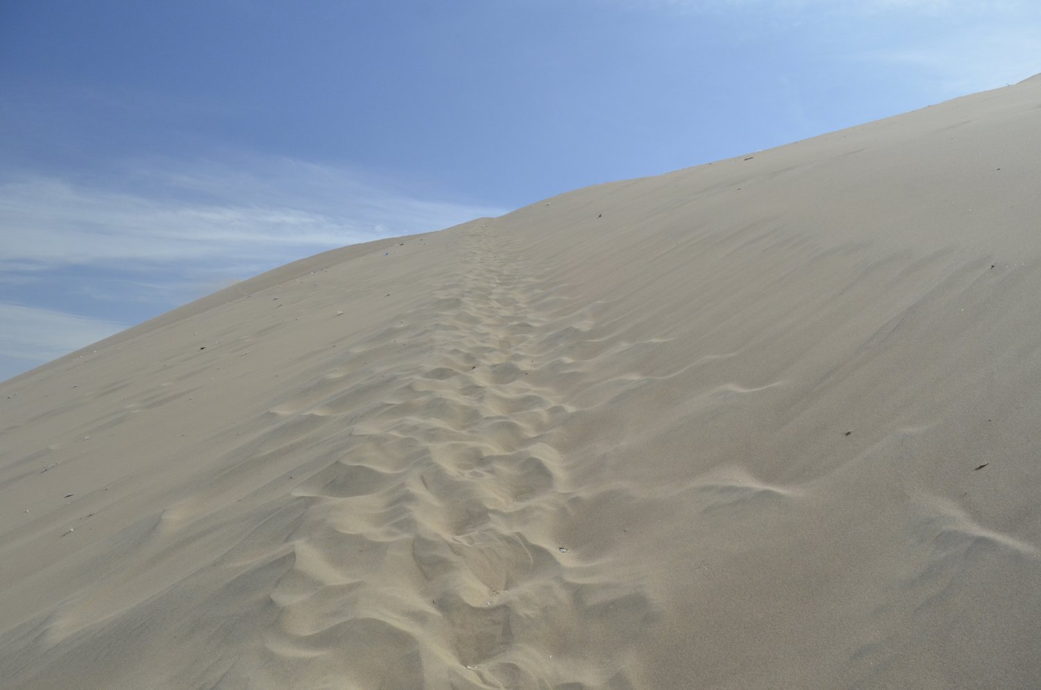 A subida se deu por meio de uma “trilha” deixada por outros caminhantes, orientando o trajeto, meio em diagonal à duna.
