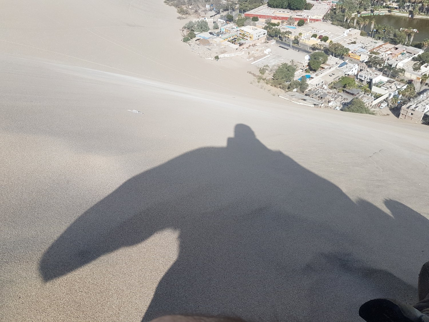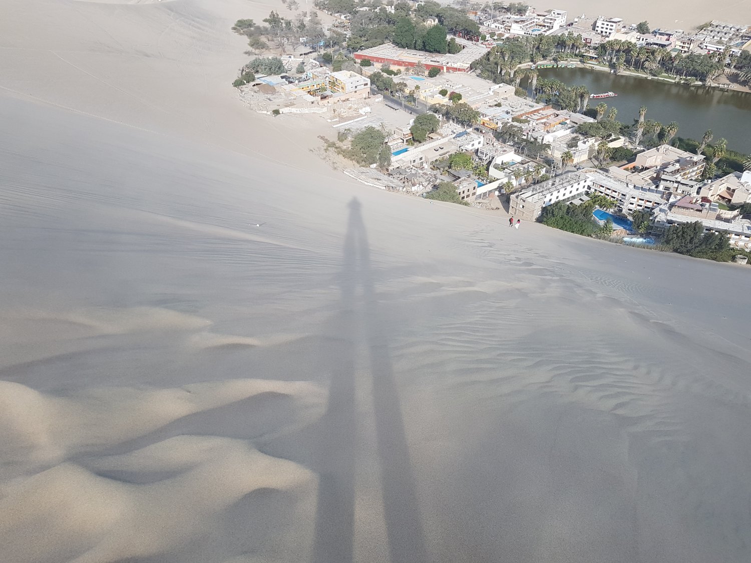 Mesmo assim, fiquei lá curtindo a vista, a areia que se movia, o calor acumulado sob a areia ou brincando com minha própria sombra, que em certo momento me pareceu ser de um côndor ou então da chamada de um seriado de tv dos anos 1960 “Terra de gigantes”.