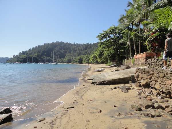 Então se chega à Praia do Flamengo. Majestosa, com águas calmas e claras. Há casas de veraneio em toda a orla mas a vegetação as integra ao cenário. E em uma dessas casas foi aberto um bar/restaurante muito legal. Atende principalmente passageiros de lanchas que apoitam naquelas bandas.