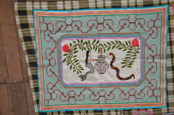 A primeira parada foi na comunidade de São Francisco onde os Shipibo-Konibo tem uma incrível tecelagem em algodão e basicamente os desenhos se referem à serpente, à cerâmica, aos meandros do rio Ucayali e a Yauhasca.