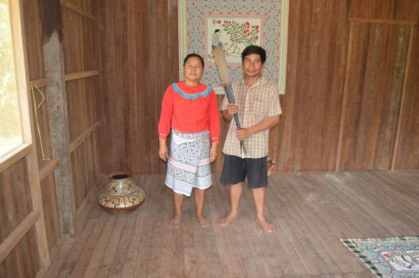 Em Santa Clara conhecemos uma típica familia Shipibo, e fizemos uma degustação no pomar. É possível alugar um chalé na comunidade para passar férias, pescar e fazer trilhas. Vimos também a confecção das roupas típicas, tingidas com terra de várias cores.