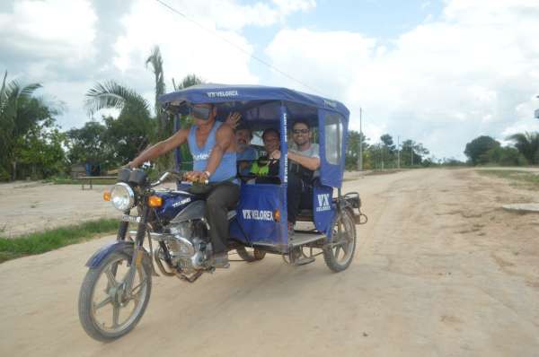A ideia era fazer uma caminhada de São Francisco até a comunidade de Santa Clara, cerca de 2km. Mas o sol forte e aquela alta umidade nos convenceram a ir de taxi (motocar).