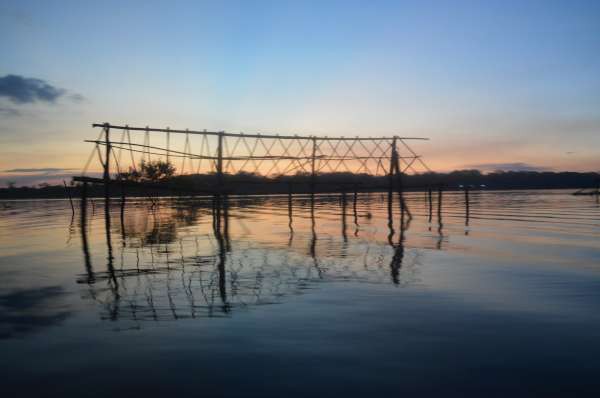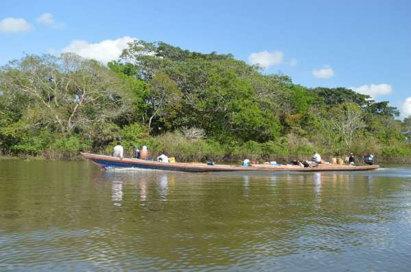 Essa laguna recebe as águas do rio Ucayali e tem pequenos canais por onde pequenos barcos de pesca tem acesso ao rio.