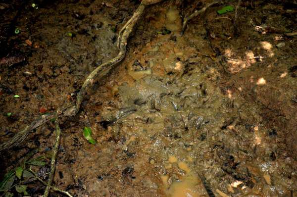 Não chegamos a ver os animais grandes, mas as pegadas de cervos, antas e capivaras, tanto na Collpa, como nas margens de rios e "quebradas "(córregos) indicam a presença desses animais.