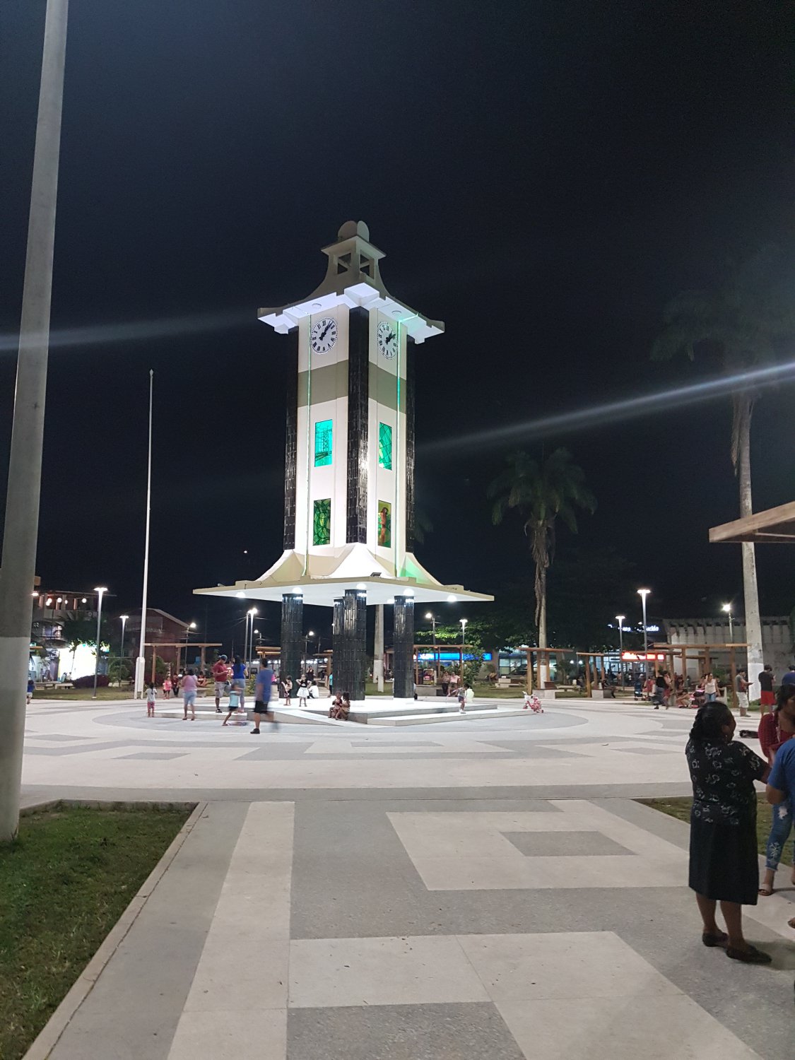 A Pequena Plaza de Armas ostenta uma torre de relógio que atrai famílias ao seu redor. Nas noites de P. Maldonado a praça fica repleta de crianças correndo livremente.