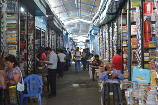 Próximo do Congresso Nacional, na Jr. Amazonas, existe uma feira de livros usados (Sebo) com centenas de stands com bilhões de livros sobre os mais diferentes temas. Compramos dois livros de uma coleção publicada nos anos 70 pelo Banco de Crédito Peruano, um sobre arte sacra e outro sobre cerâmica pré-hispânica. Apesar do entorno não ter o charme e atrativos dos pontos turísticos próximos dali, vale a pena visitar. Há por perto alguns pequenos restaurantes de comida do dia a dia dos limenhos. Almoçamos muito bem num deles.