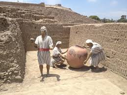 As casas e as pirâmides foram construídas em adobe (um tijolo feito de barro misturado com fibras vegetais).