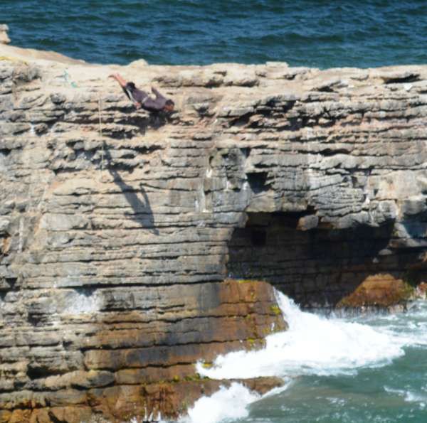 No caminho, o ônibus faz uma parada a beira mar para vermos um homem vestido de frei saltar de cabeça de um penhasco no mar gelado. Depois damos gorjetas ao corajoso "frei"!