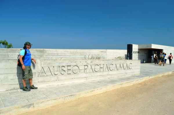No complexo Pachacámac, um local totalmente árido, a visita começa pelo impressionante museu com peças de arqueologia e tecelagem, além da imagem do deus Pachacámac.