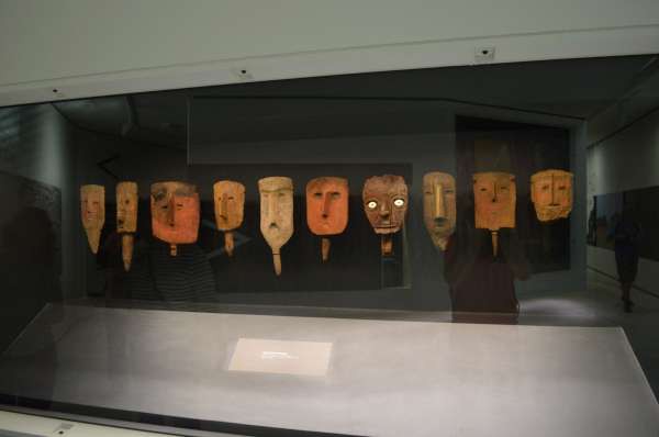 Mascaras mortuárias: Como as mumias acabavam perdendo a forma, uma máscara de madeira ficava sobre o corpo acomodado em posição fetal, enrolado em muitos tecidos, para manter uma alusão à figura humana.