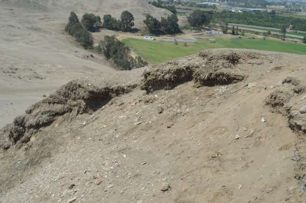 Num dos mirantes, vimos o que deveria ser uma espécie de sambaqui, pois tinha “lixo” pré-hispânico, com restos de crustáceos, conchas, camadas de vegetação (provavelmente da cobertura das construções, já que a área é extremamente árida, ossos de animais e cacos de cerâmica ao alcance dos olhos. Não se pode sair da trilha pois as escavações arqueológicas estão longe de acabar. Quanta coisa ainda será encontrada nas pirâmides?