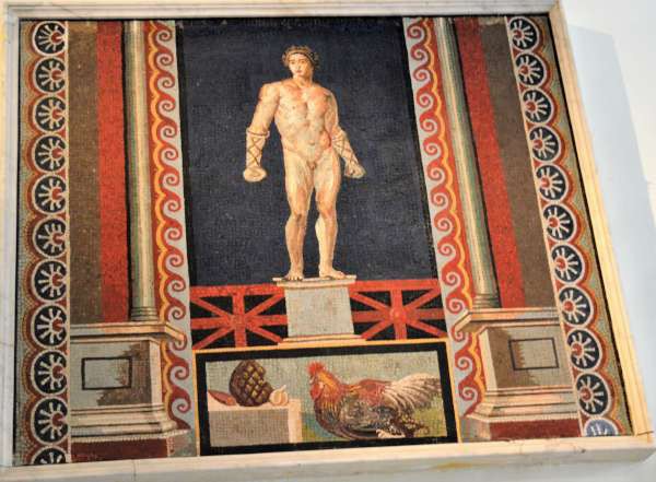 Mosaico que decorava uma casa em Pompeia, preservado graças à tragedia de 79dC.