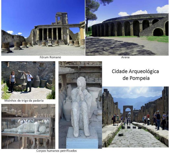 No dia seguinte fomos visitar as ruínas da cidade romana de Pompeia que foi fundada no século VIII aC, foi coberta por cinzas do vulcão Vesúvio em 24 de Agosto de 79 dC, ficando soterrada até ser reencontrada por acaso em 1748. Desde então, as escavações vem mostrando como era a vida em uma cidade nos tempos da Roma Antiga.