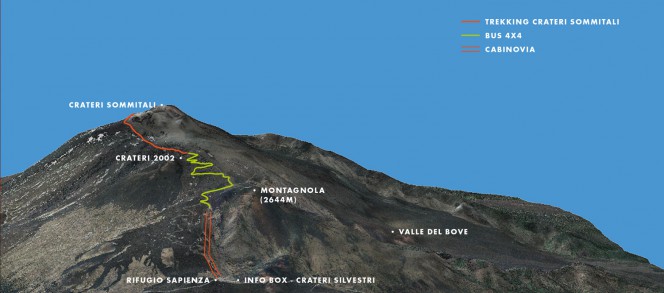 Para chegar às crateras principais (crateri sommitali), a 2900 ou 3330 metros é obrigatório contratar uma operadora, com guias especializados.