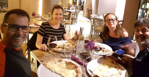 Chegamos de volta à Catânia exaustos, mas como era nossa última noite na cidade, criamos coragem para nos aprontar e sair para uma bela pizza com um bom vinho.