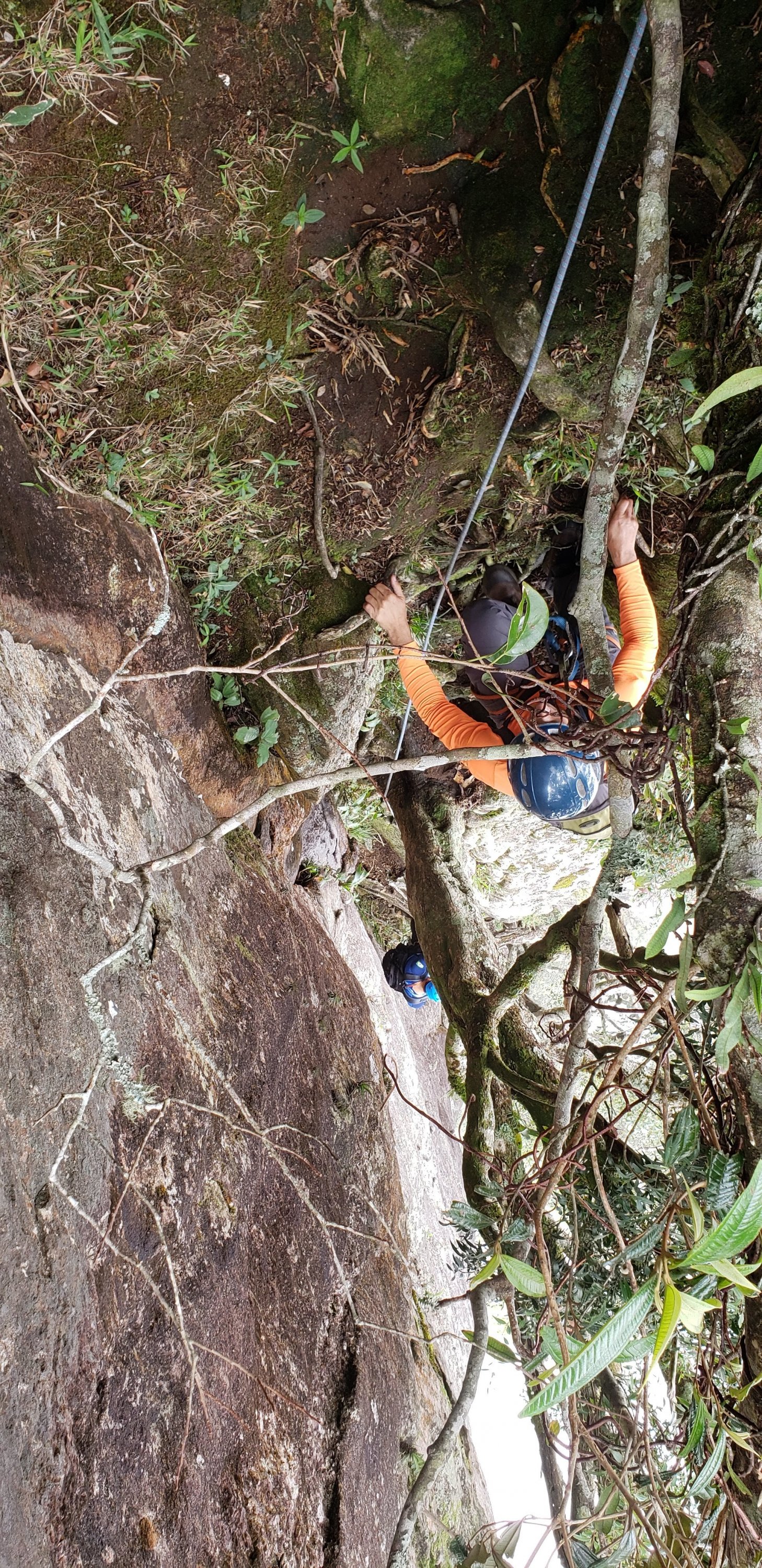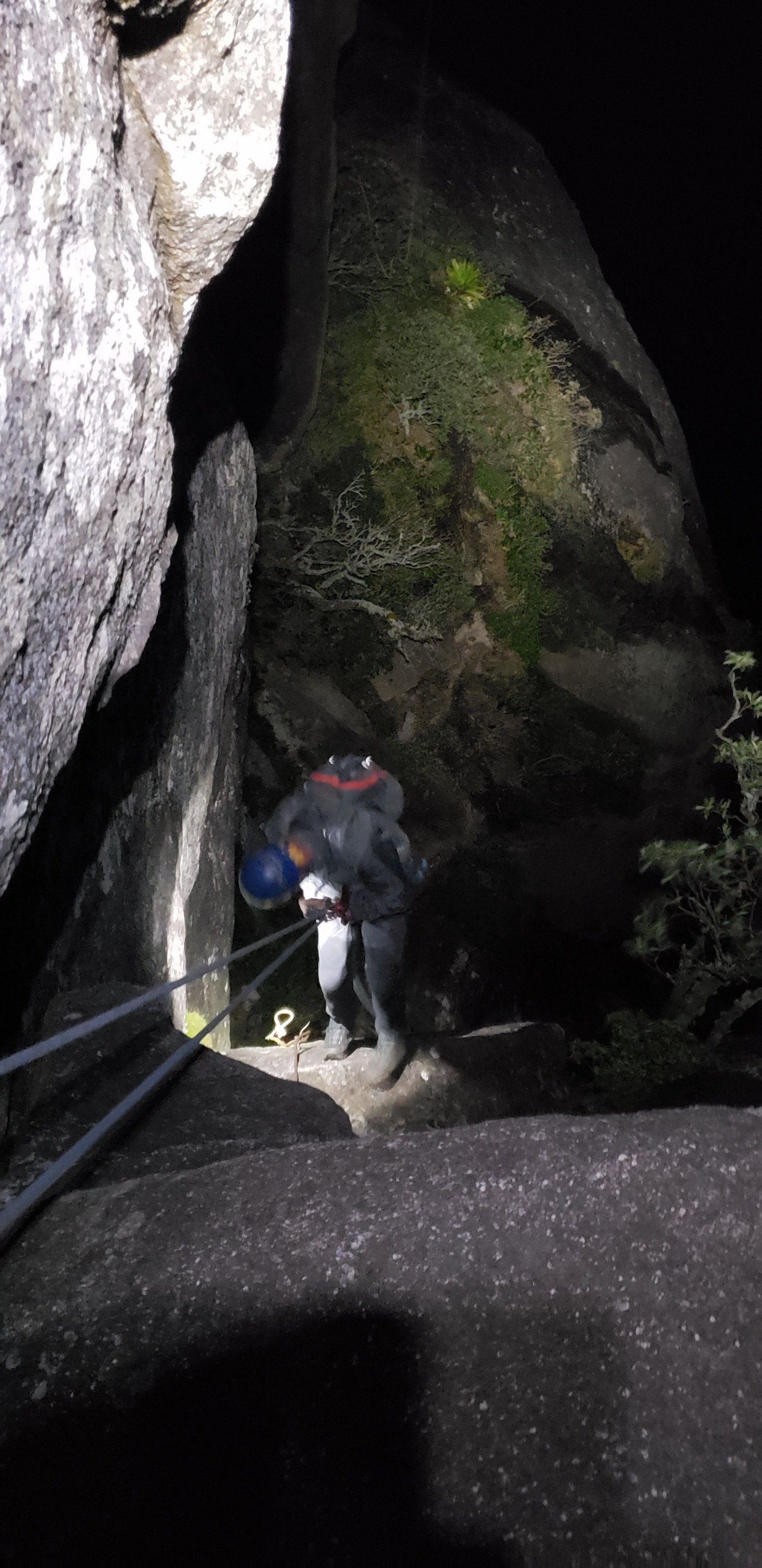 Depois da conquista, nessa hora nos demos conta que retornaríamos durante a noite. Seriam 4 horas de muita atenção nos cabos de aços molhados onde sem luvas seria impossível descer as pirambeiras escorregadias.