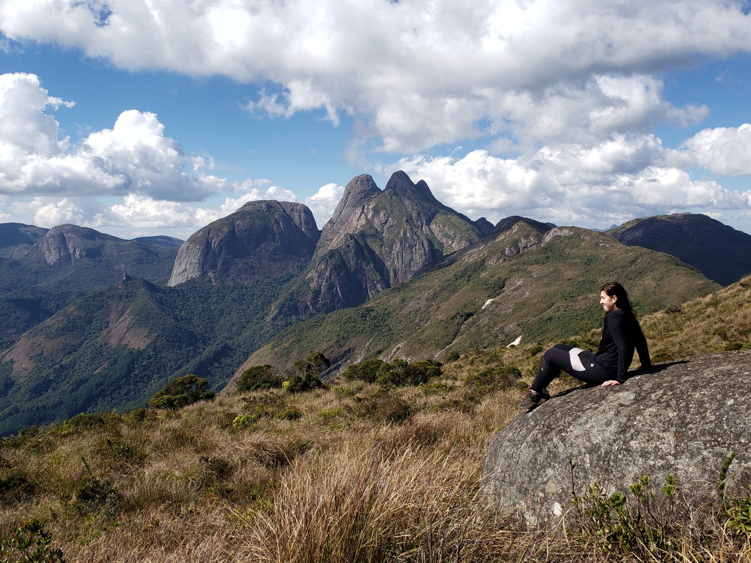 Cabeça de Dragão, para o outro lados o 2 Bicos, Seio da Mulher de Pedra, ao fundo o Parnaso. É uma vista 360º graus de montanhas.