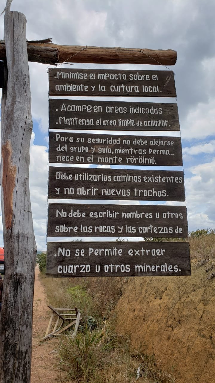 Após mais algumas horas de estrada e muito reggaeton, chegamos na aldeia por volta das 13:40. Alí, nosso primeiro desafio já apareceu. Segundo os nossos guiar, os responsáveis da aldeia não queriam permitir o nosso acesso naquele dia, já que tínhamos passado do horário máximo permitido, que seria 13:30. Foi quando o pessoal começou a ficar bem nervoso com a possibilidade de termos que dormir lá e andar dois dias em apenas um no dia seguinte. Com calma, ao invés de gerar mais brigas e gastos de energia desnecessários, conversamos com o responsável e expomos o nosso anseio e experiência em caminhadas longas. Felizmente, ele liberou a nossa entrada. Comemos muito rapidamente o que foi preparado pelos nossos guias, escutamos as orientações dos responsáveis da aldeia e, por volta das 14:30, iniciamos a nossa caminhada de 8 dias no Monte Roraima.