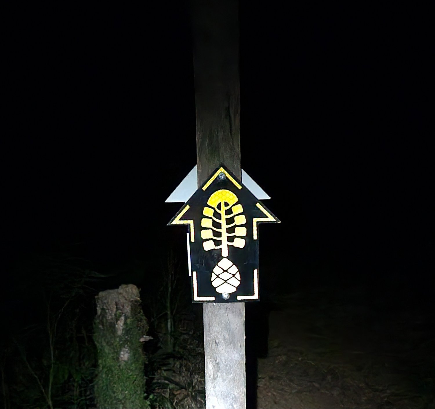 Ainda de noite, com lanternas ligadas, caminhamos pela velha estrada inicial até o Morro do Careca. De lá, entramos pra valer na trilha e fomos progredindo entre subidas um pouco mais íngremes, trepa-pedras e desvios para a esquerda para margear os morros à frente. O grupo demonstrou uma certa diferença de ritmo inicial, mas que foi sendo compensada após alguns participantes reforçarem a alimentação ou entrarem no ritmo da caminhada. Enquanto íamos subindo, o sol nasceu esquentando todo mundo de vez. Já próximo das 7h30 da manhã, chegamos na Base da subida do Pico dos Marins.
