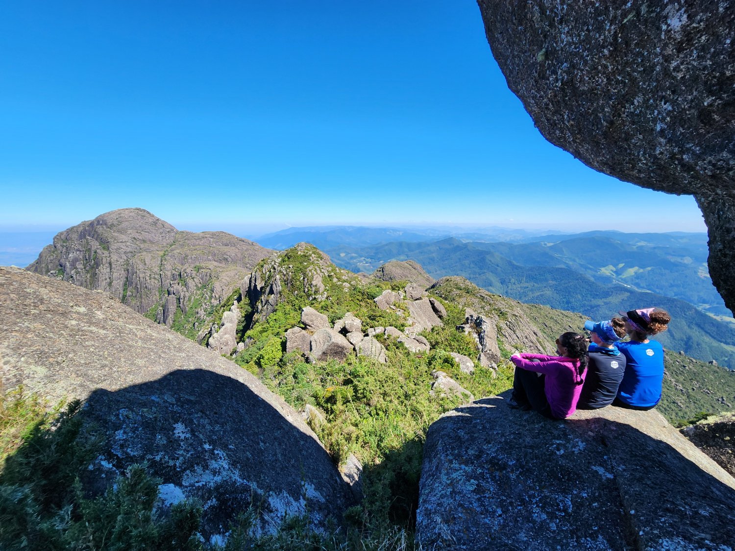 Acompanhados por esse belo quadro, chegamos ao cume do Pico dos Marins por volta das 9h00. Animados com o belo dia e com o ótimo desempenho do grupo, todos comemoraram e assinaram o livro de cume. Para alguns, aquela foi a primeira vez ali em cima. Para outros, já mais experientes, permeava o bonito sentimento de que aquela paisagem sempre impressionava a todos que a presenciam.