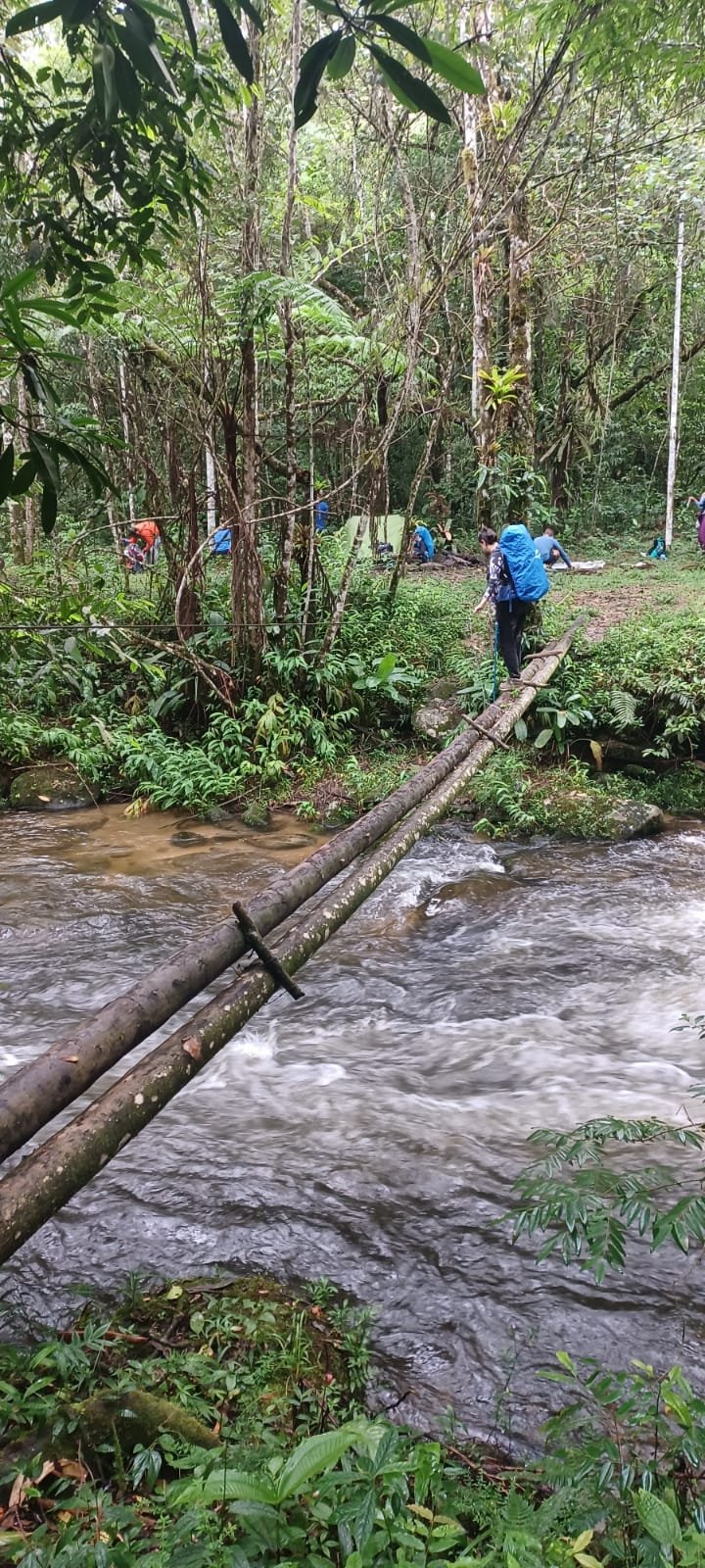 Ao chegarmos, nos deparamos com uma antiga ponte de madeiras (eram dois troncos, agora é 1,5) protegida por um cabo de aço amarrado a duas árvores presentes na margem. Deu um medinho em algumas pessoas. Com calma, todos passaram e montaram acampamento em uma área abrigada sob as árvores... Ampla e com bons pontos de convivência... A proximidade do rio (Ribeirão do Veado) e da cachoeira eram pontos extremamente positivos. Uma rápida ida à Cachoeira dos Veados (o tempo não estava muito bom e ainda chovia) e um banho de rio para fechar o dia, acompanhado daquela roda de cozinha outdoor especial.. também próximo das 20hrs, fomos todos dormir depois dos 16km totais percorridos durante o dia.