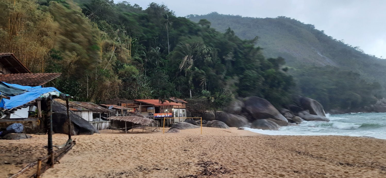 Logo o tempo foi dando uma mudada, antes mesmo de sairmos do camping, caíram algumas gotas de chuva. Começamos então a caminhar para Ponta Negra, esta é outra parte do caminho em que basicamente não vemos nada do mar, temos uma caminhada de subida constante são quase 550 m de ganho altimétrico em cerca de 3,5km e mais 3km de descida. Chegando perto da comunidade caiçara de Ponta Negra nos deparamos com a situação catastrófica dos reflexos dos deslizamentos que ocorreram em Abril deste ano com fatalidades, uma região enorme se mostrava ainda instável e tratamos de passar rapidamente para chegar logo na área de camping do Ismael. Chegamos por volta de meio dia e já começamos a organizar nossas barracas para então avaliar a possibilidade de fazer o ataque ao Saco Bravo. Já estávamos acompanhando a previsão do tempo e era esperada uma chuva. Depois de tanto discutir, às 13h decidimos por não fazer, decisão muito bem pensada pois ao longo do dia só fomos vendo o clima ficar cada vez mais hostil.