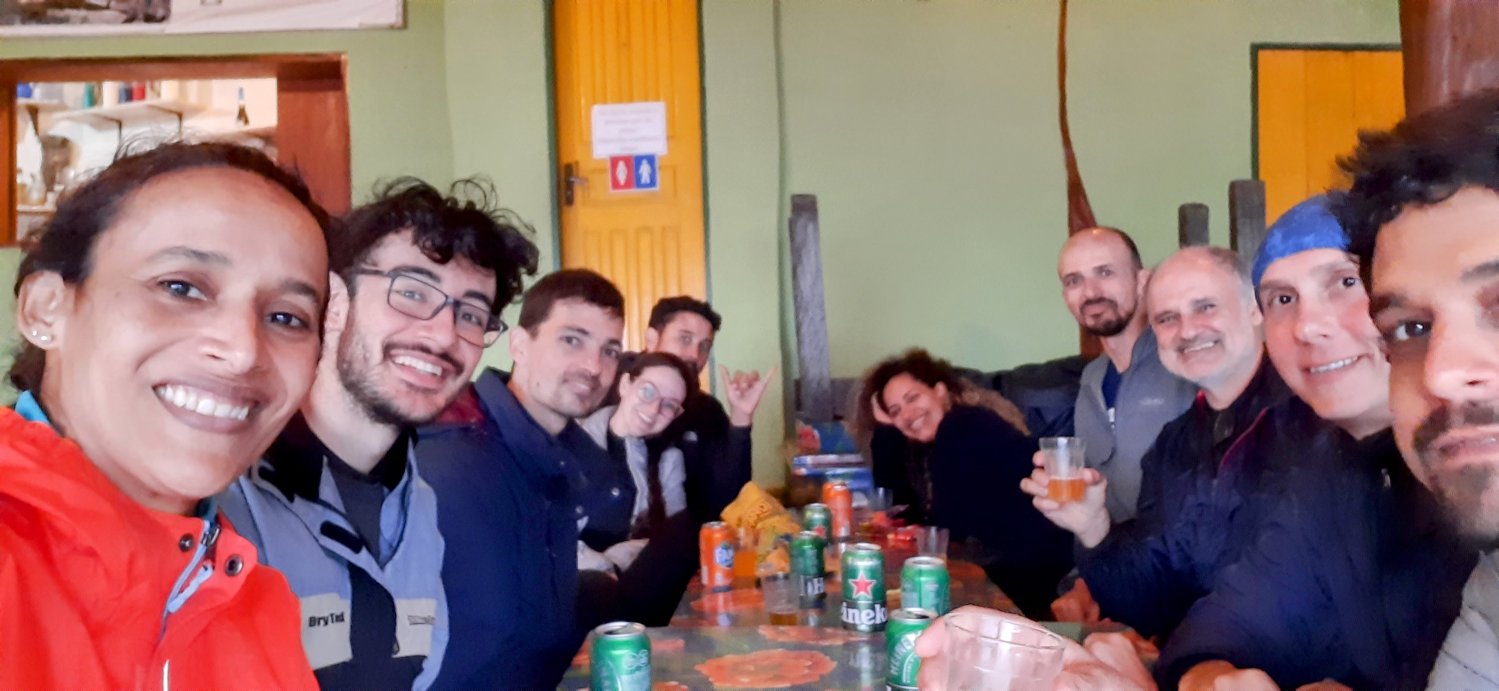 Depois de aproveitar tudo isso, todos foram tomando seus banhos e chegando na mesa central da área de camping, onde logo Adhemar, Sertã e Sertãozinho foram buscar bancos para todos poderem se sentar em volta, trocar impressões sobre o dia, os campings pelo que passamos, beber mais uma coquinha, latão de cerveja Skol e cantar parabéns para o nosso guia Bruno Negreiros, que na verdade só faz aniversário dia 20/06, mas que lá era o lugar onde ele realmente estava ansioso para chegar na pernada toda, devido ser um cantinho realmente único. Todos já satisfeitos das jantas, cada um foi se acolhendo em sua barraca, outros ficaram admirando o céu super estrelado que mais tarde ainda nos presenteou com uma lua de sangue, experiência de fato única.