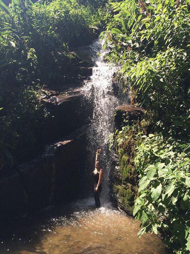 Eu e minha irmã fizemos uma parada para um bom banho de cachoeira.