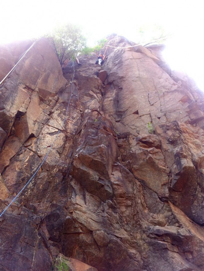 A pedreira tem um desnível de 50 metros. Existem mais de duas vias, e de diversos níveis.